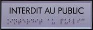Braillecom est un procédé d'incrustation de microbilles d'acier inoxydable dans un support en résine acrylique. Il permet de mixer de façon esthétique texte noire, pictogramme et braille.